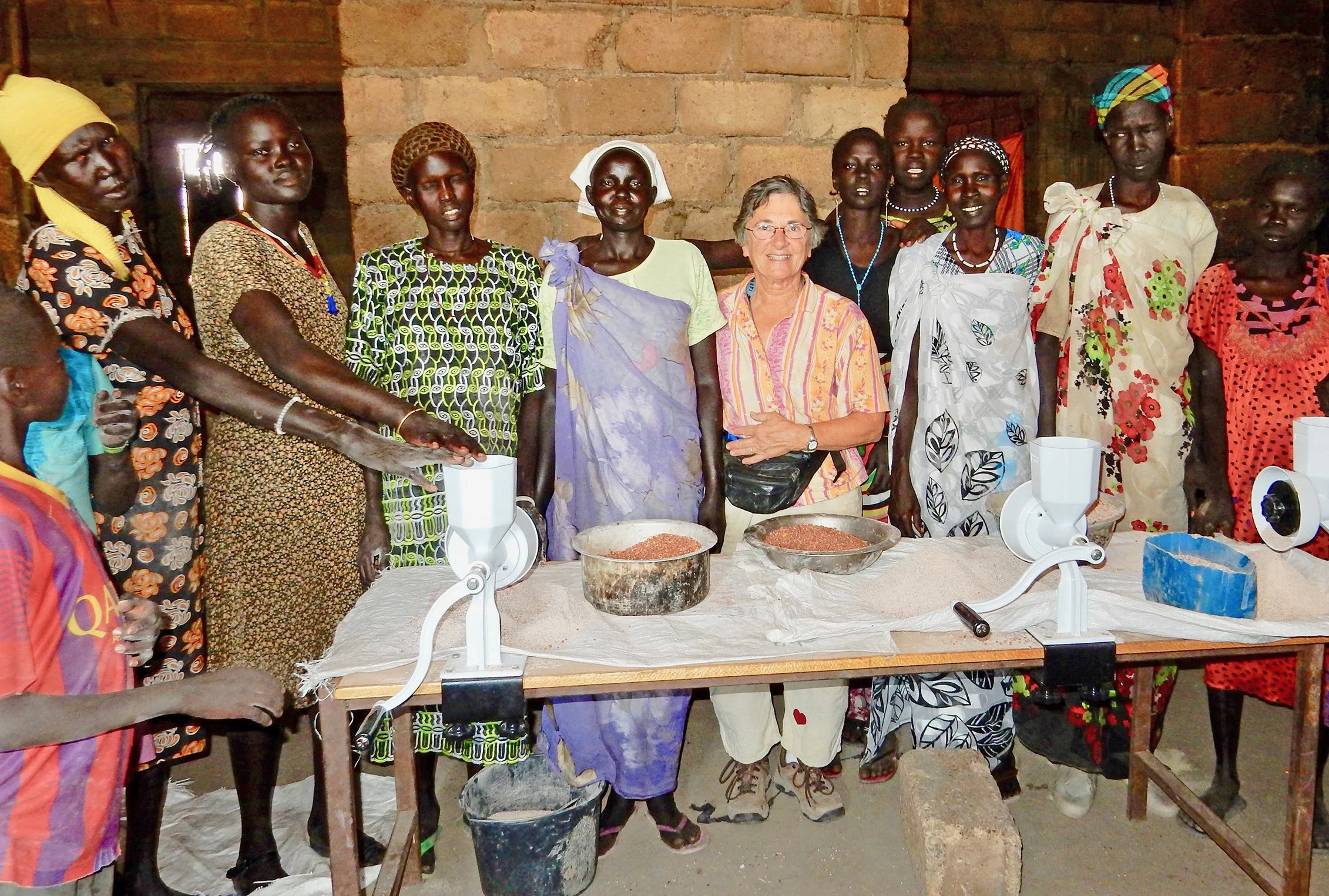 Nearly 10 years ago, Dr. Gloria Ann ("Ann") Evans began traveling to South Sudan. Her initial goal was to support MacArthur Foundation recipient Dr. Jill Seaman and her leadership of a healthcare clinic in the Old Fangak community. As Ann became more familiar with the community, it was evident that women and children face tremendous challenges from gaps in education. Ann began by gathering women to clear out an abandoned building that would later become a Women's Center, adding a permanent roof, and donating hand grinders to ease daily meal preparation. Since then, the community has grown from a small village to a place of safety for thousands of people that now call Old Fangak home. As the "Women at the Center" project grew and dream evolved, Mothering Across Continents assumed management of the project, and Ann continues to serve as an advocate inspiring supporters. Each visit she makes to the village is always cause for celebration.